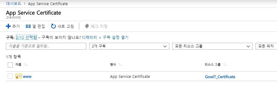 Azure 에서 웹서버용 SSL 인증서 만들기.